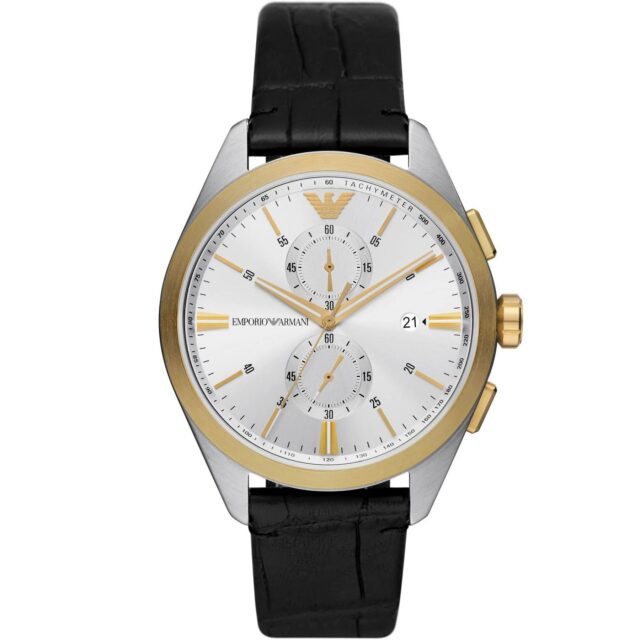 Elevate your style with the exquisite Emporio Armani Men’s Gold Stainless Steel Watch. Designed for men who appreciate classic sophistication, this timepiece combines a bold gold case with a sleek black leather strap for a look that’s both refined and modern. Whether you’re heading to a business meeting, a formal event, or simply enjoying an evening out, this watch is the perfect companion to showcase your impeccable taste.