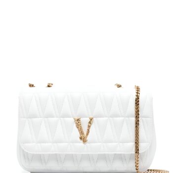 Versace White Crossbody Bag with Adjustable Strap and Pink Lining